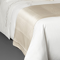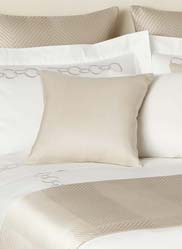 Links Embroidery, paired with lustrous Luxury Herringbone euro shams and bedcover, sets the tone for this opulent look. Simple and elegant Passepartout decorative pillows add the finishing touches.