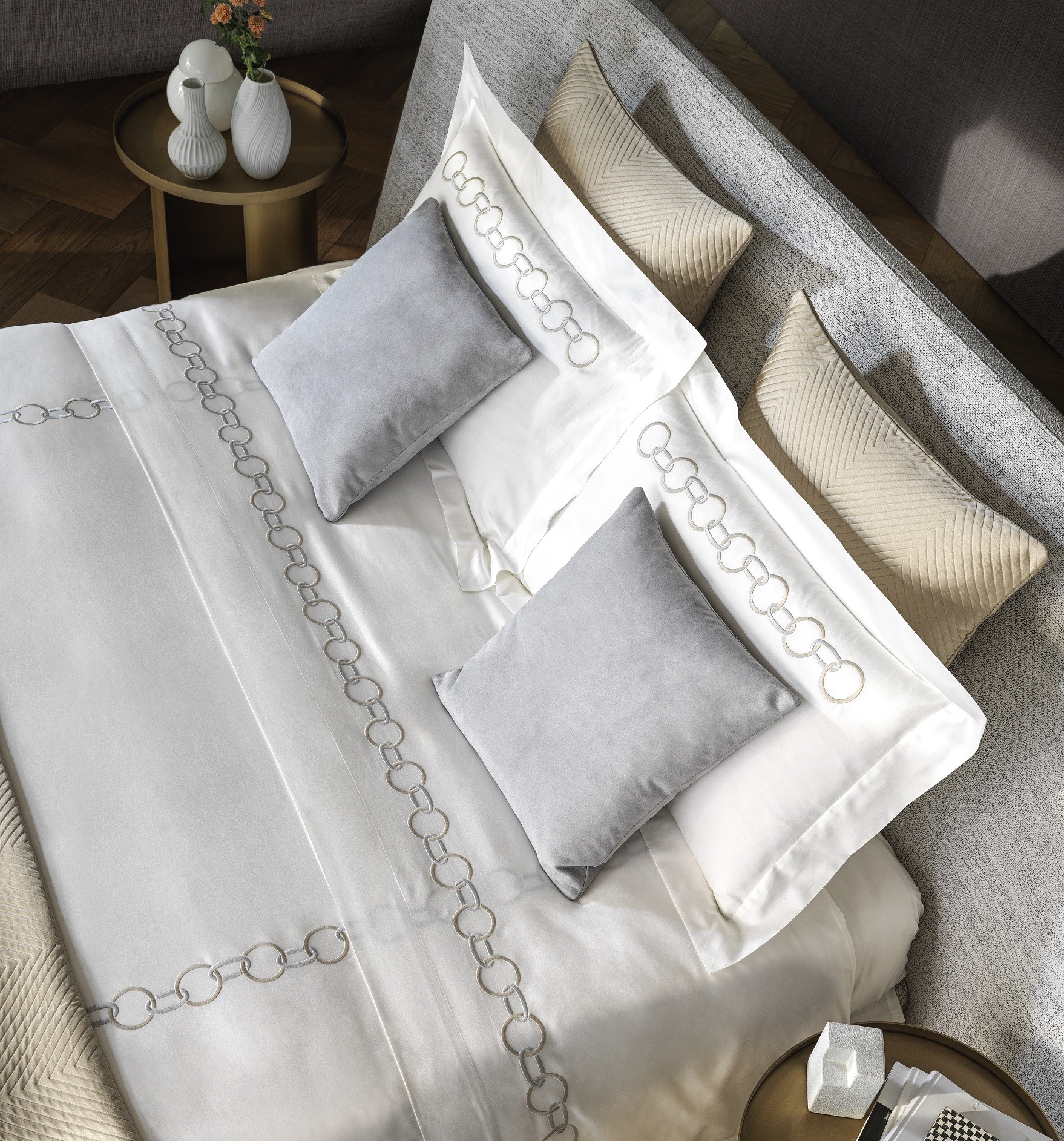 A masterful demonstration of the brand’s know-how and expertise, the iconic interlocking motif of dual-tone hues adds a decorative element of refined sophistication to soft and silky cotton sateen.